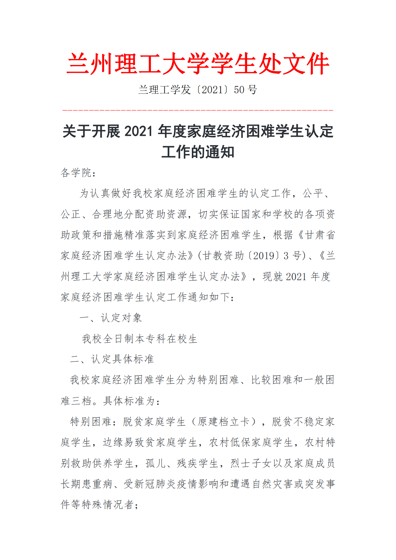 关于开展2021年度家庭经济困难学生认定工作的通知