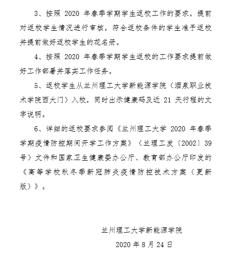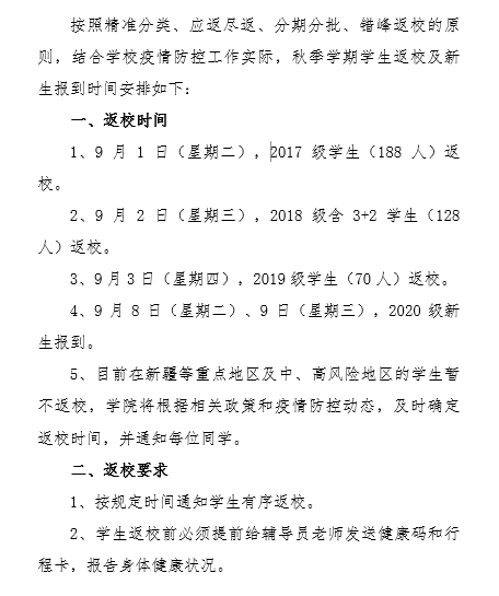 关于2020年秋季学期学生返校及2020级新生报到时间安排